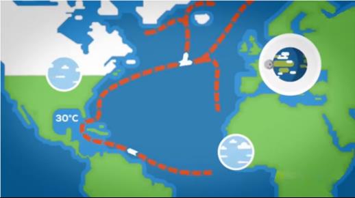 墨西哥湾流本质上就是一条在海里的河流,一条源头在墨西哥湾海里的河,流经佛罗里达海峡并在北大西洋截流。流速为每秒2.5米或8英尺。这很容易就卷走一架在水面降落的飞机和停泊的船只。