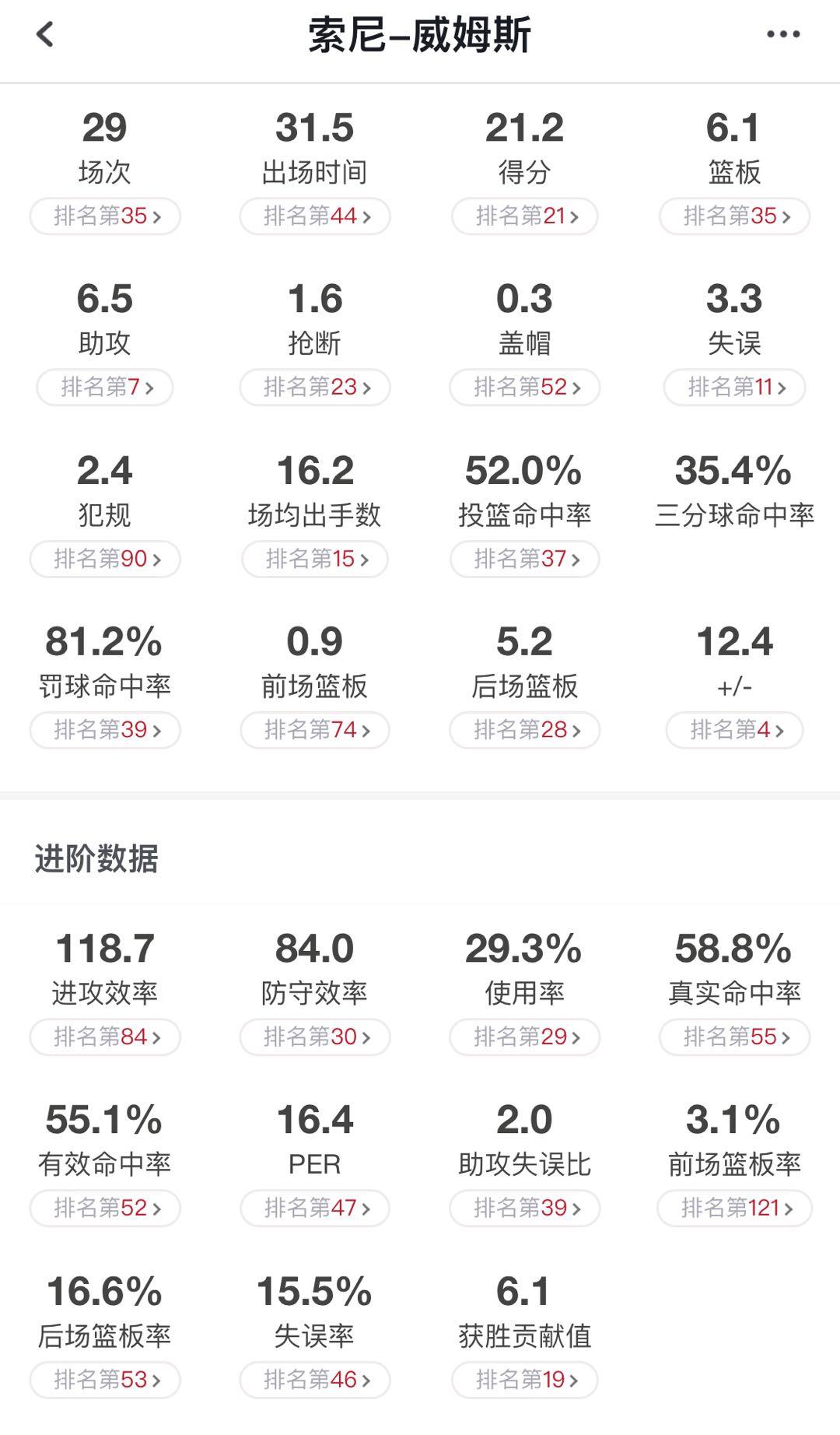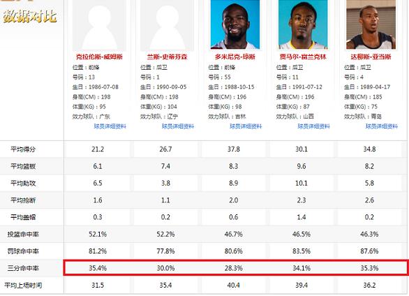 威姆斯本赛季的三分命中率为35.4%,真实命中率达58.8%,在联盟中算得上优秀水平,对比在CBA丛林中咆哮横行的师弟、琼斯、富兰克林和亚当斯等锋卫线上的猛禽野兽,威姆斯的三分球命中率是最优秀的。