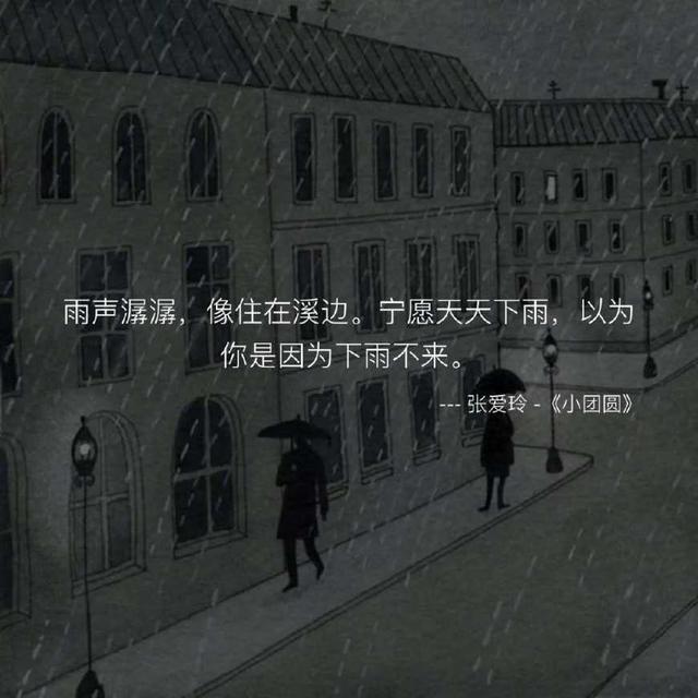 “雨声潺潺,像住在溪边。宁愿天天下雨,以为你是因为下雨不来。”