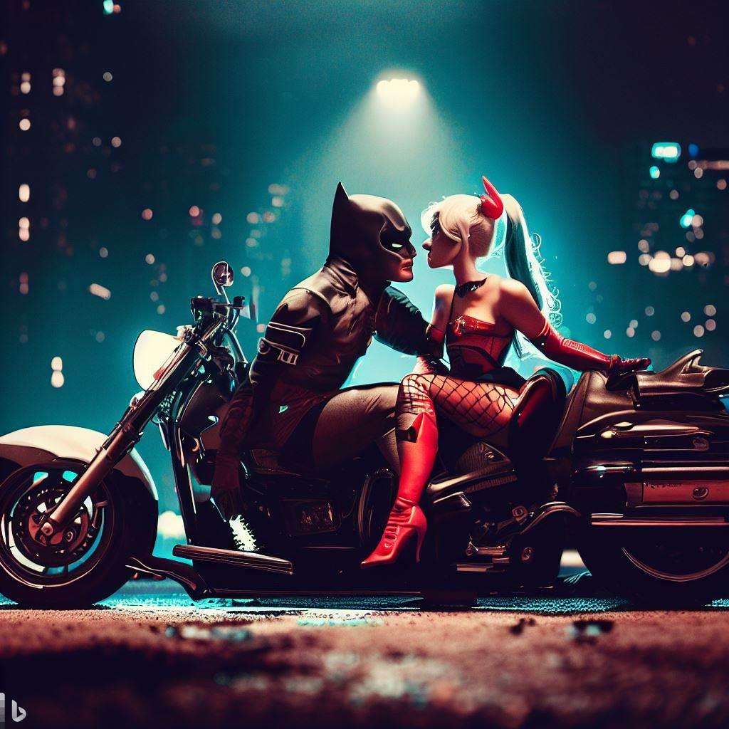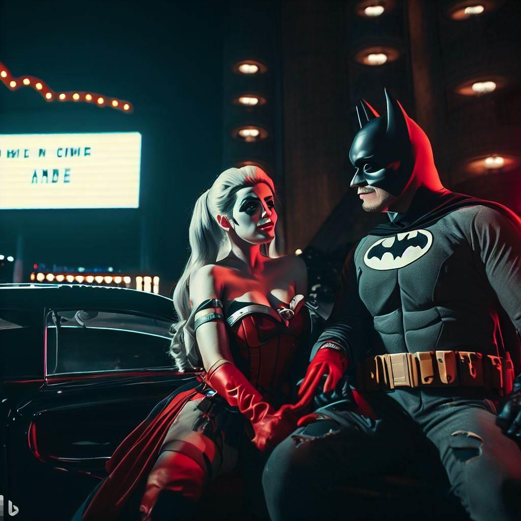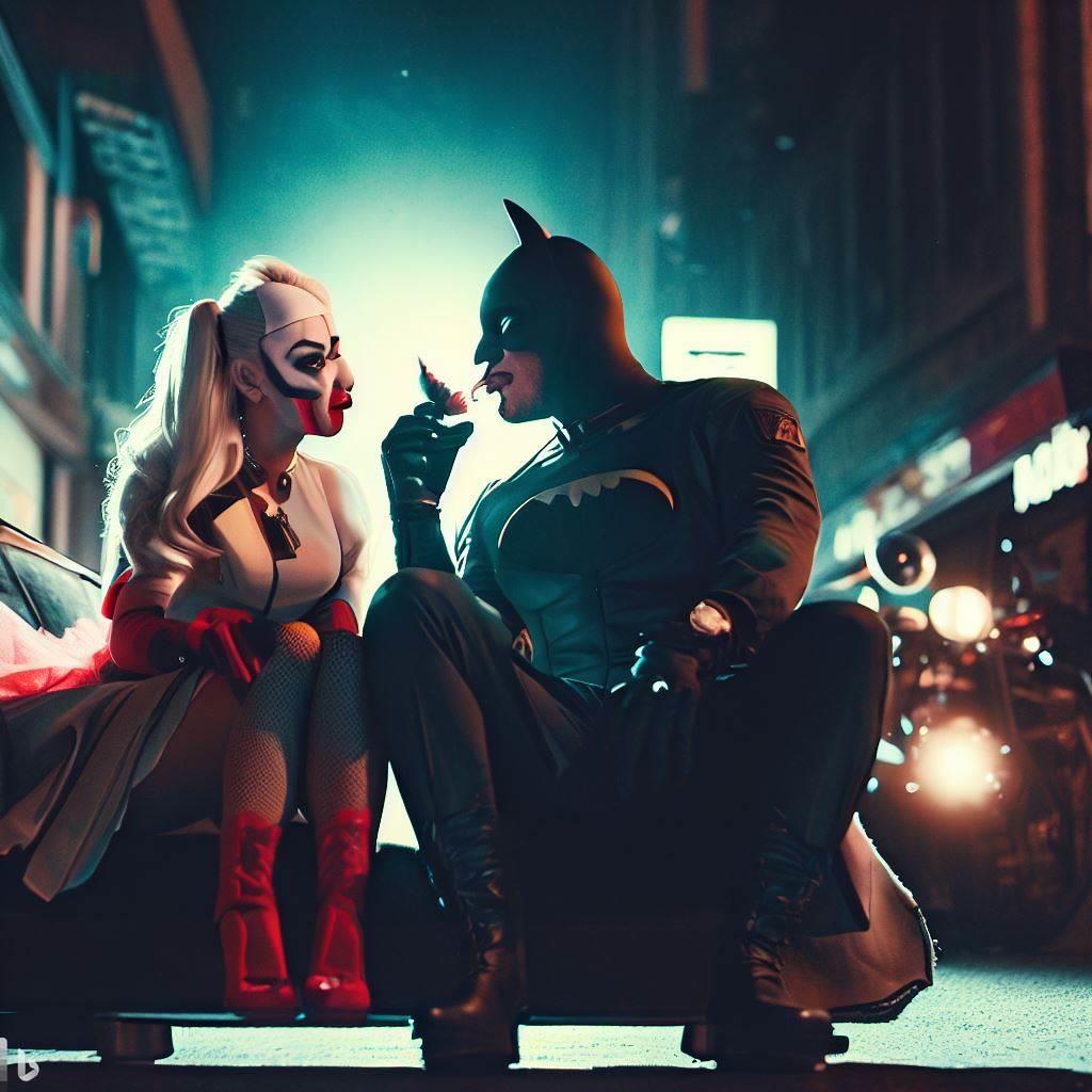 蝙蝠侠和小丑女在一家高档餐厅坐下,点了一些菜。他们都穿着普通的衣服,没有戴面具,也没有带武器。他们想尝试一下正常的生活,看看是否能够相爱。
