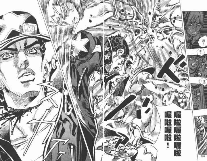 在荒木的设定中,其实都一直喜欢让时间的能力大于空间,时间在荒木的漫画中是最大的存在,但是到了这一部里面,其实是一部“精神”的体现了,精神上的力量又大于了绯红之王的时间能力,更能凸显出乔鲁诺的精神力量,大概荒木也有这种的意思。