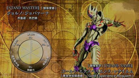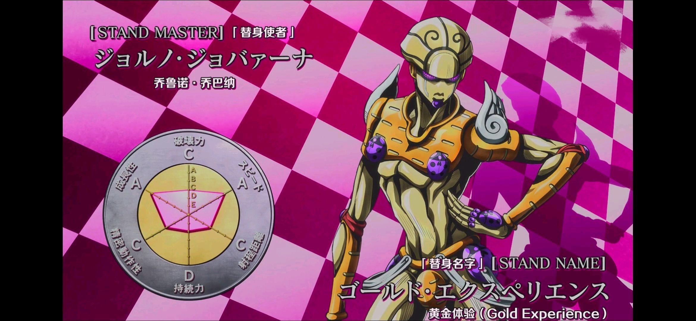 以上只是黄金体验时期的替身实力,但是黄金体验可是一个会成长的替身,随着战斗的成长都显得太慢,通过“箭”的力量,变为了“黄金体验镇魂曲”,将一切回归无的究极替身,就连乔鲁诺本身都没有意识到将所有一切的意志与力量变为“零”的能力。