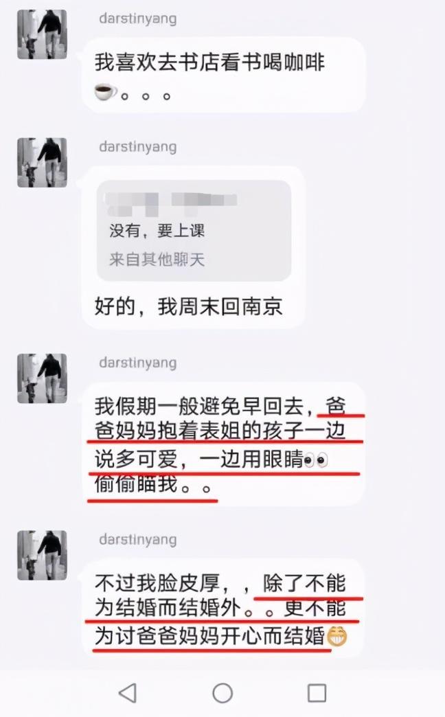 “看到QQ空间那些曝光,我看到其他同学也和我有相似的经历,她们也被这位杨老师在图书馆搭讪。别的同学爆出的经历显示,杨某军也对她们说了他自己‘从美国约翰霍普金斯大学留学归来’,甚至连骚扰其他女生时说的话,都和当时对我说的很相似。”