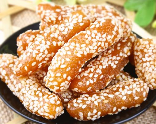 蜜三刀是山东省、江苏省、苏北等地的特色传统小吃之一,本地八大特色糕点之一。具有芝麻香气浓郁、亮而不粘、香软甜蜜的特点。