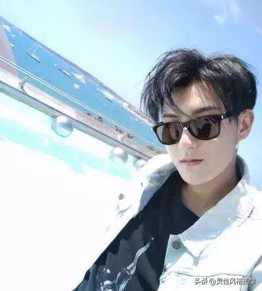 这是一款带有复古感的油头发型,看王源的这款三七分梳理的黑色短发,短发发丝做了服帖整洁的梳理,这样一款油头发型比较适合颜值高的男生,很有贵公子的即视感。