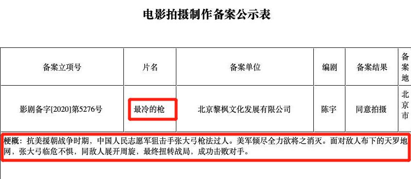 《最冷的枪》立项成功