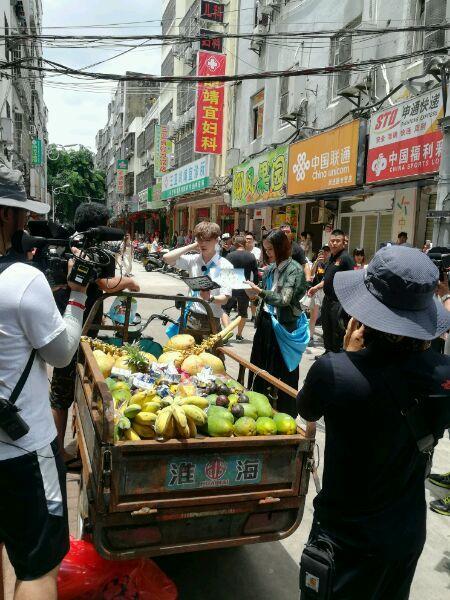 张艺兴和张韵艺,这是靠近三亚第一市场的某条巷子,那一车都是海南特产,来,小编给大伙细数下:木瓜,香蕉,椰子,山竹等等。