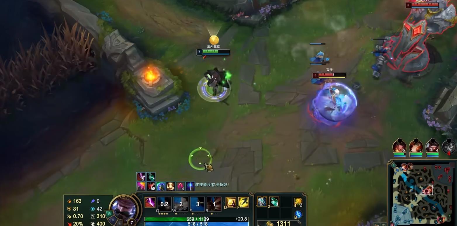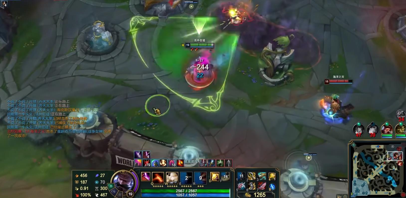 众所周知,狂风这件装备的主动技能是一个位移,而且还带有高额的伤害,非常适合没有位移的AD英雄。不过男枪这个英雄其实本质上并不是一个传统的射手,所以狂风并不是首选。然而张嘉文在尝试狂风男枪之后,却发现了这样出装的奥秘,甚至可以在团战中使出四段位移。