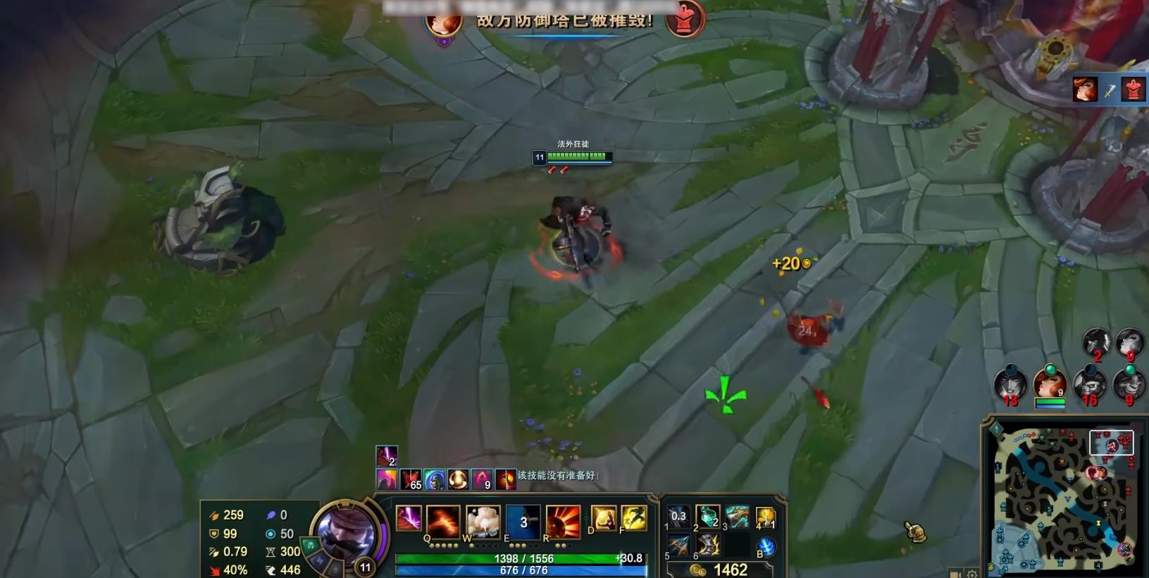 而在三段位移之后,张嘉文的第四段位移就是他的大招,不得不说男枪的大招位移距离也是挺远的,对面虽然说技能冷却也很短,但是和张嘉文的位移比起来却还是要逊色不少,看得出来张嘉文这波连招非常的丝滑,对面根本没办法对张嘉文位置进行预判,直接被打懵圈了。相信在之后的无限火力中,狂风男枪也一定会成为热门选择。
