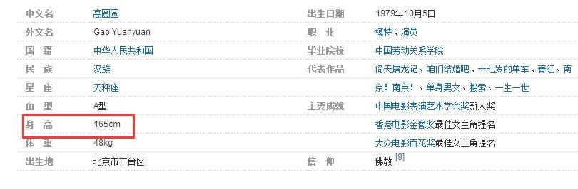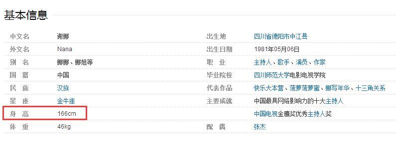 这位也一直声明自己有165cm,而百科显示的是166cm。