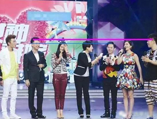 而在这张图中,谢娜穿了高跟,还是比身高170cm的黄海波矮了一丢丢,咱们算作2厘米,而谢娜的细跟,起码8厘米。170+2厘米的鞋跟=172,172-2厘米差距-8厘米鞋跟=162cm。