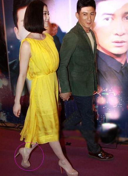 这双鞋被扒了无数次,说是14厘米高的跟,当然,14厘米高,不代表它能增高14厘米,咱们往小了说,就给她换算成增高10厘米吧。而这张图中刘诗诗穿上这双恨天高,还是比吴奇隆矮上最少3、4厘米,咱们算作3厘米吧。