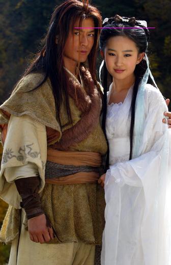 神雕时,无论是剧照,还是花絮她都到黄晓明眉毛那里,这样算来差距应该是6-7厘米,(这张图,不可能垫垫子,两个人穿的都是电视剧里的鞋),而刚才推算黄晓明应该是173左右,那么粗略算一下173-7=166cm。