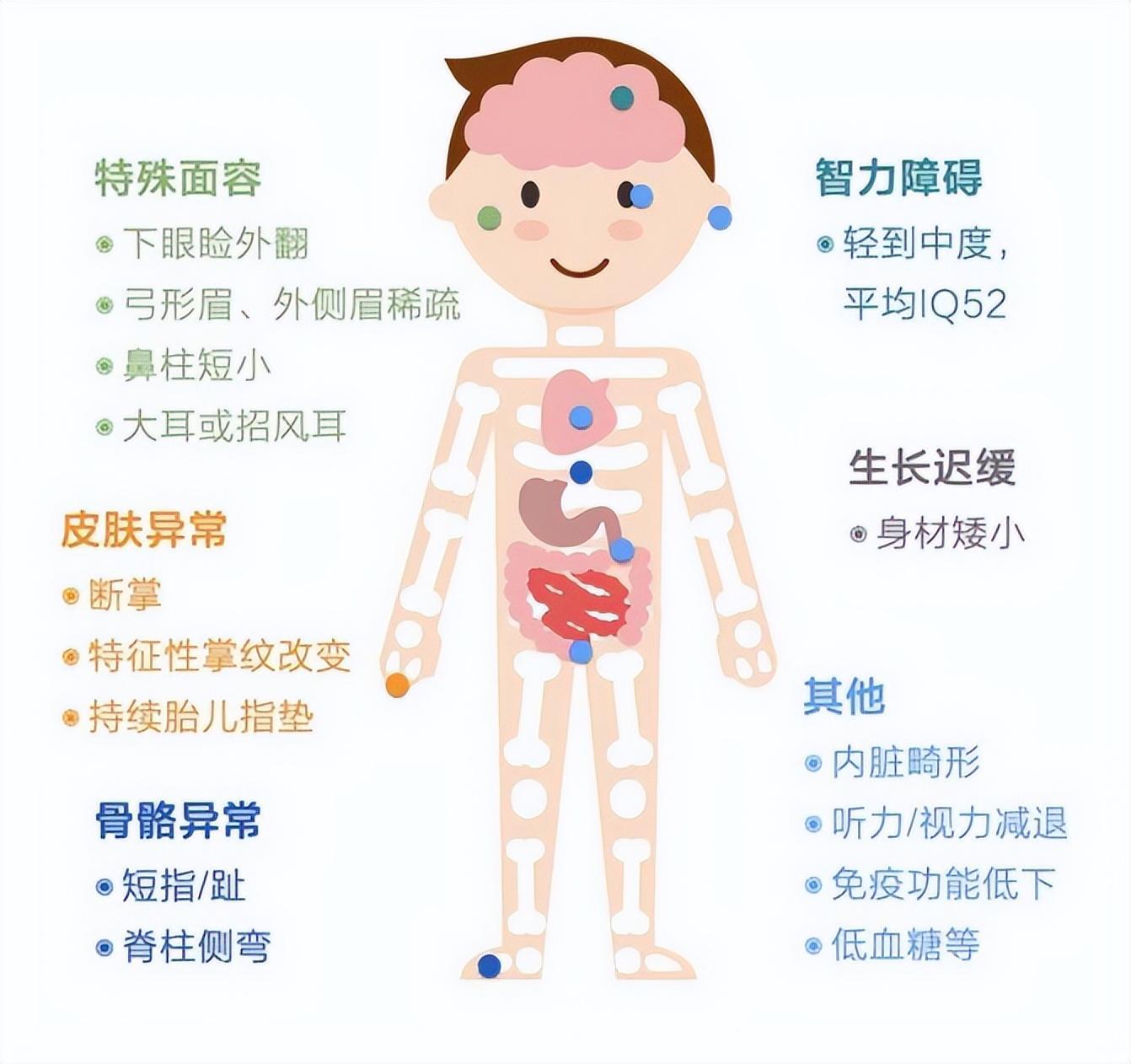 不过,这个疾病的症状,可不只有漂亮的眼睫毛。一般患病的患者还会有以下几种特点:患者的智力低下,患者的身体发育不良,骨骼发育存在障碍,先天性的内脏畸形,皮肤纹理也会出现异常,有些还甚至丧失听力。