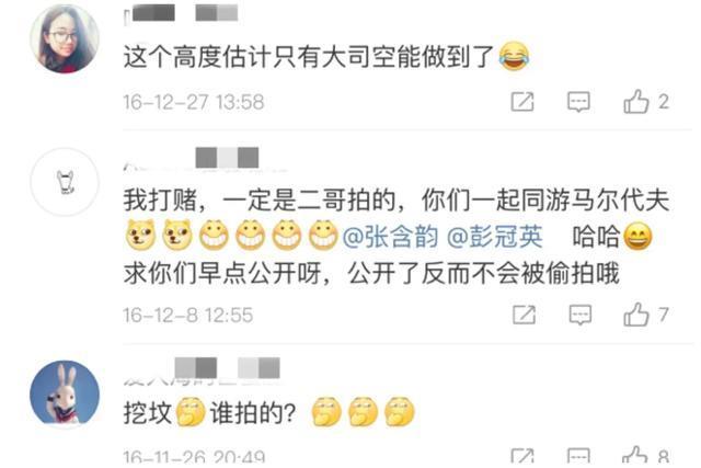 2014年张含韵就与彭冠英传出绯闻,还有网友表示偶遇了二人在国外度假。2014年1月,网传张含韵和彭冠英在马尔代夫,31日就有网友表示和张含韵彭冠英同一个航班从马尔代夫返回。根据张含韵1月30日发布的动态,她的确是晒出了一张在海边度假的照片,依据照片拍摄的角度是高个子人所拍,当时就有很多粉丝默认是彭冠英所拍。