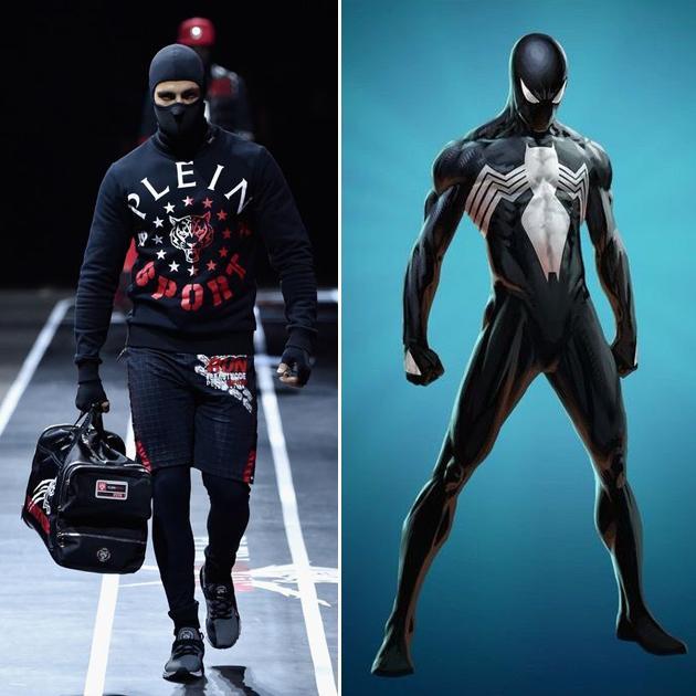 除了这些看着就让人热血沸腾的跨界联名设计,就连T台秀场中都不乏以漫威作品为灵感的设计。Plein Sport这个系列就十分明显了,单看每套look,就能从中还原漫威电影中的原型人物。