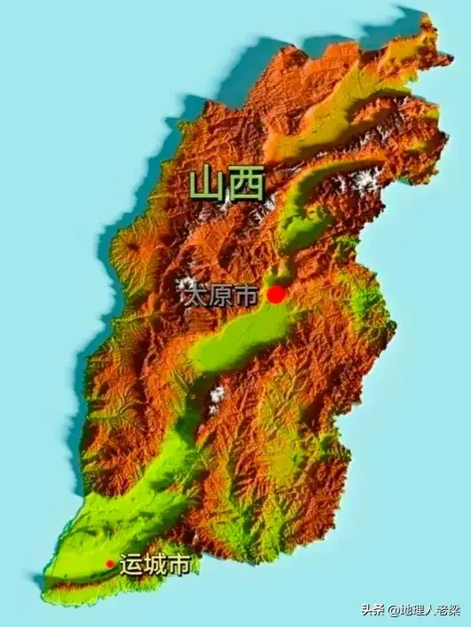 山西省地形图。山西地处黄河以东,太行山之西,东西为山,中为盆地,被称为“表里山河”