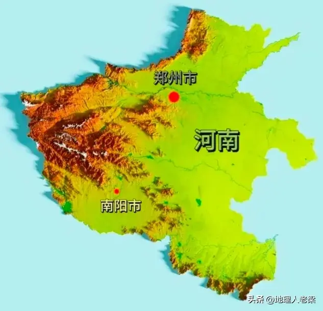 河南省地形图。河南省地势呈望北向南、承东启西之势,地势西高东低,由平原、盆地、山地、丘陵、水面构成