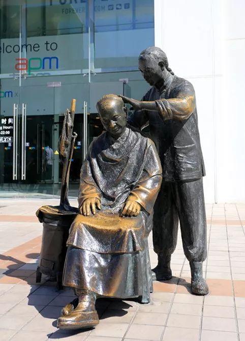 北京王府井步行街的理发匠铜雕