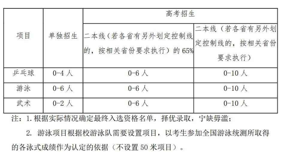 1.单独招生 考生须获得一级(含)以上运动员技术等级证书且高中阶段近三年在省级(含)以上比赛中获得乒乓球项目前三名(仅限单打、双打), 游泳、武术项目前六名者,或全国(或国际)比赛个人项目前八名者。