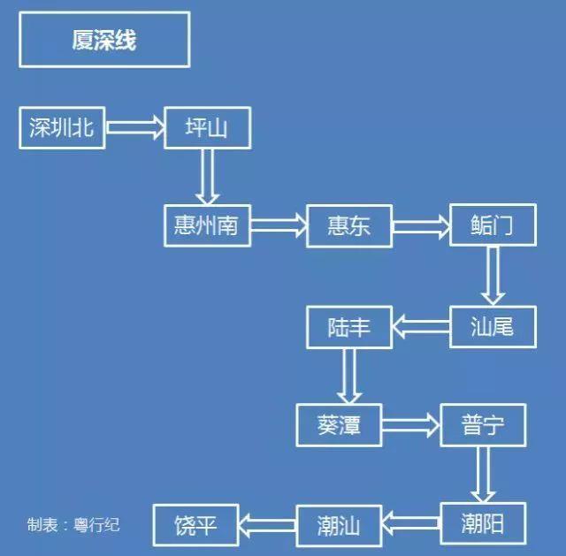 2013 年 12 月 28 日全线正式通车运营。北起厦门,经漳州、潮州、汕头、揭阳、汕尾、惠州引入深圳。