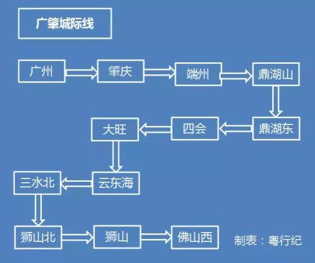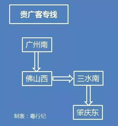 贵广客专线省内段途径肇庆、佛山、广州,从广州南站至佛山西站仅需 19 分钟,至肇庆东站 35-42 分钟不等。