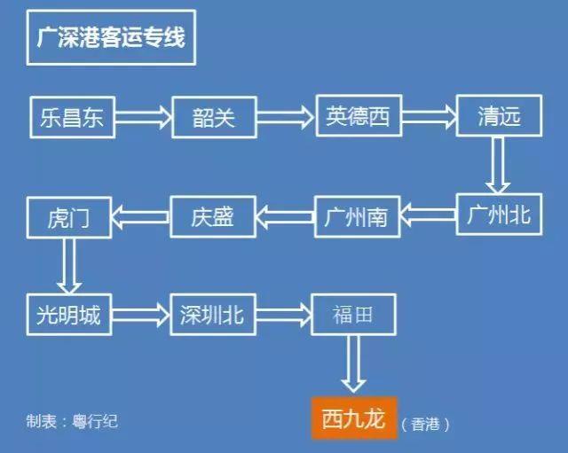 一条部分通车的在建高铁,起于韶关,途径清远、广州、东莞、深圳,终于香港。