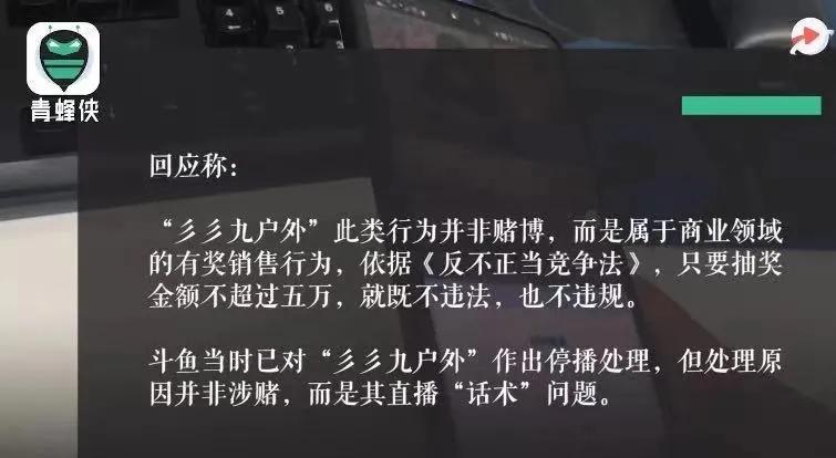 但大家可能不知道的是,最开始在有人投诉举报直播间涉赌的时候,直播平台给出的回应是 “ 彡彡九户外 ” 并不涉嫌赌博。