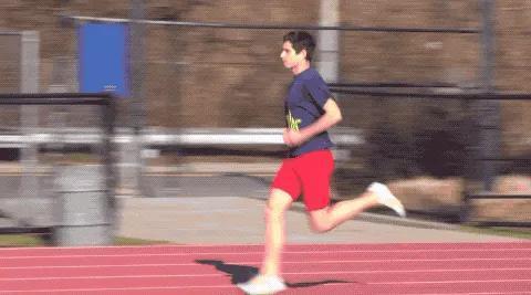 呼气,收紧腰腹单脚向前,手肘夹紧身体两侧前后摆动,摆动幅度越大跑步速度越快,重心保持正中心嘴巴呼气向前迈出前脚掌中段,整个跑步过程保持匀速运动。
