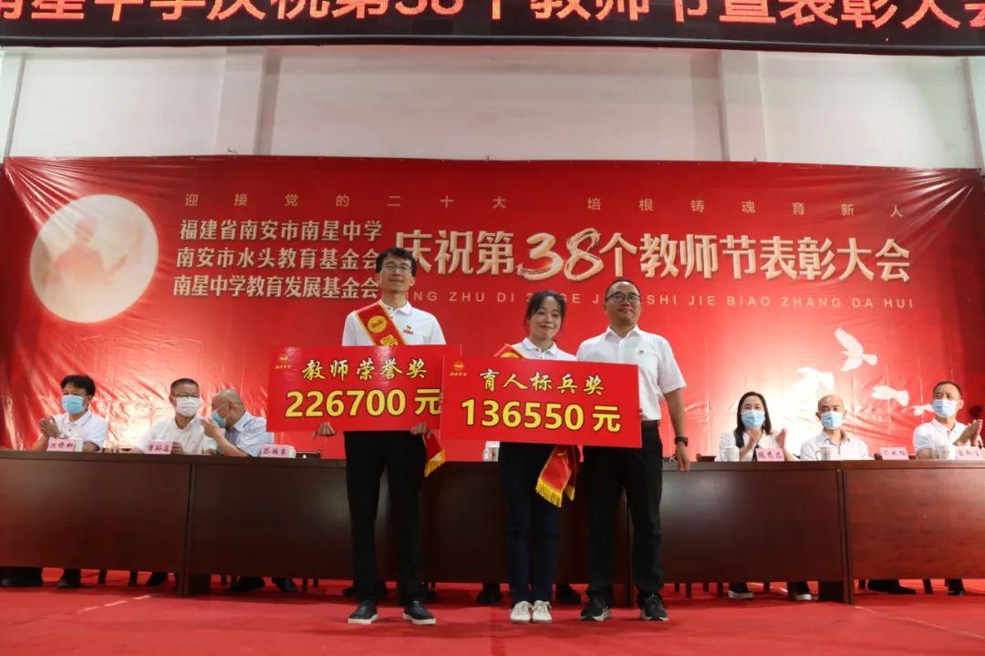 当天,表彰会向南星中学教职工颁发了中考奖励金、高考奖励金、育人标兵奖、教师荣誉奖、服务奉献奖、团结协作奖、优秀管理奖、优秀教研奖、引进优秀人才奖、提升生源素质奖等十个奖项,合计总金额236.9万元。
