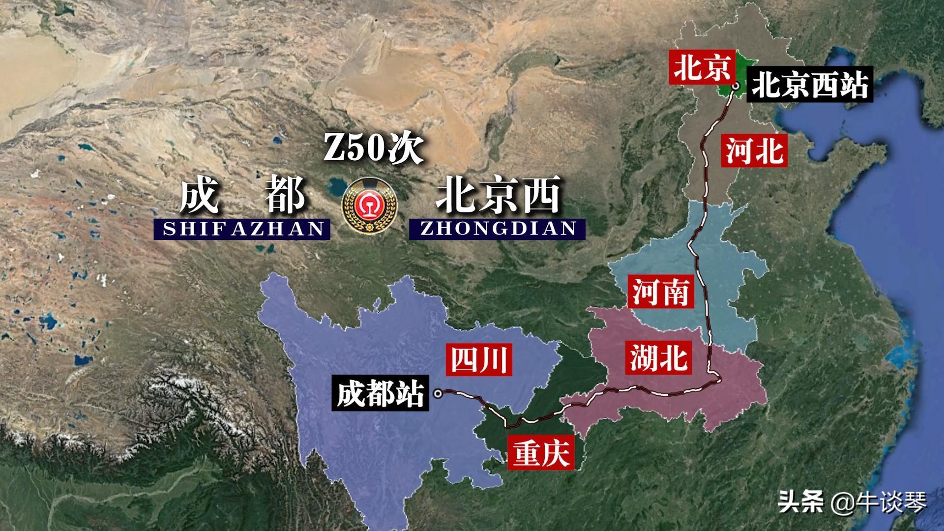 Z50次列车运行线路图:四川成都开往北京西