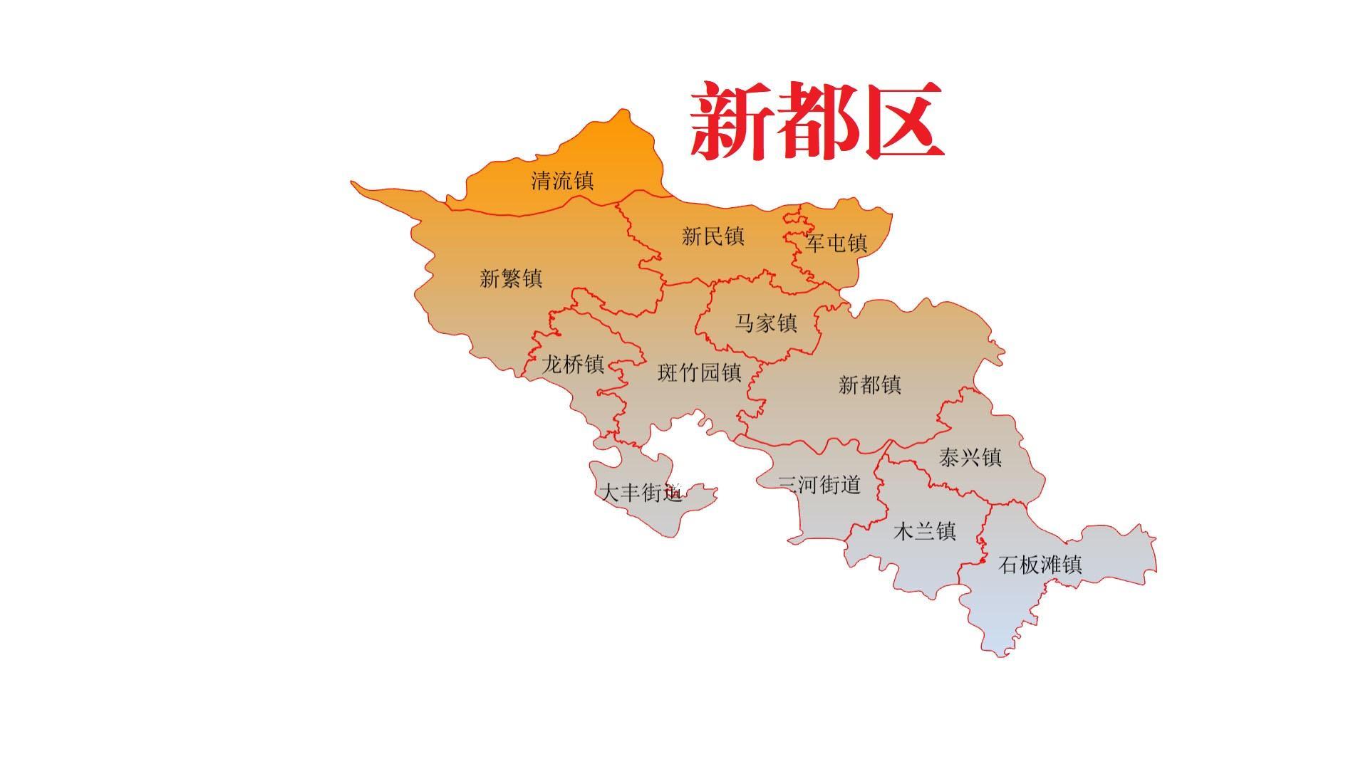 新都区总面积496平方千米,辖7个街道(桂湖街道、大丰街道、石板滩街道、斑竹园街道、三河街道、新都街道、新繁街道)、2个镇(清流镇、军屯镇)。截至2022年末,常住人口157.7万人 。