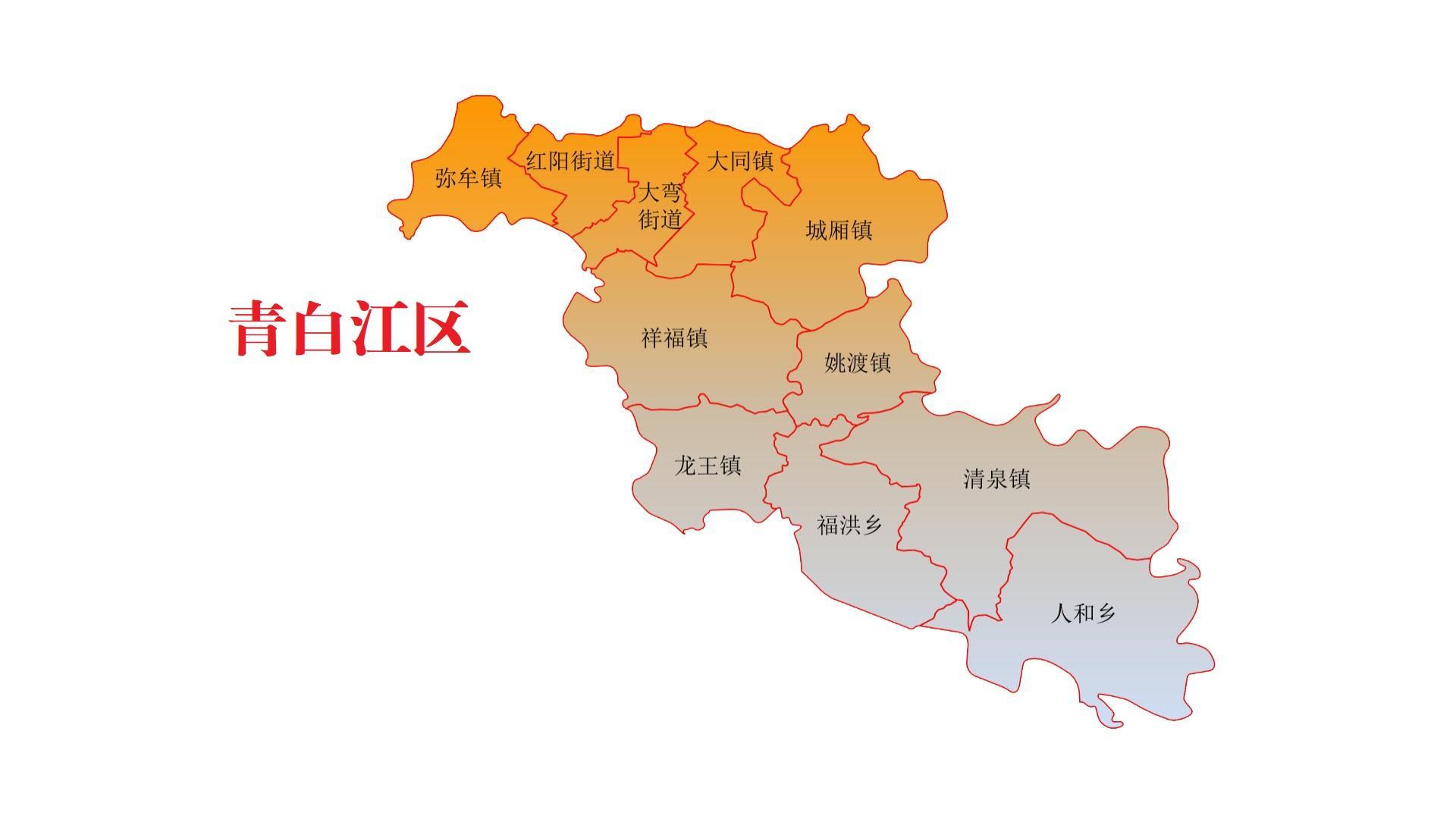 青白江区总面积378.94平方千米,辖2个街道(大弯街道、大同街道)、5个镇(城厢镇、弥牟镇、清泉镇、姚渡镇、福洪镇)。截至2022年末,青白江区常住人口50.60万人。