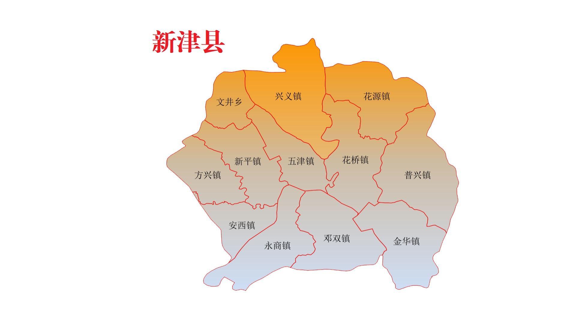 新津区,区政府驻五津街道。位于成都市域南部,东连双流区、南与眉山市彭山区相连,西临邛崃市,西北连大邑县,北接崇州市,