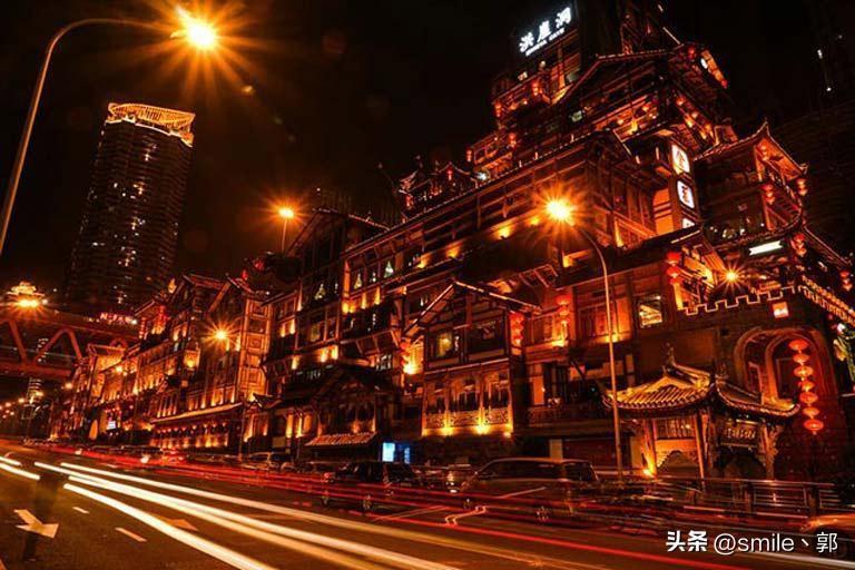 你看过日本动画大师宫崎骏的《千与千寻》吗?脑海中是否还浮现出唐母那个妖娆孤僻的澡堂的画面?黑暗笼罩着建筑,光影交错,色彩斑斓,更显迷人。难道你不想在现实世界中有机会瞥一眼,踏入这片仙境吗?夜游洪崖洞,圆梦。洪崖洞是一座具有2300多年历史的大型吊脚楼建筑群,曾作为军事要塞。洪崖洞依长江之滨悬崖而建,是观赏重庆夜景、远眺长江大桥的绝佳场所. 确实人山人海,但也让夜晚更有生机,过了人山人海,洪崖洞内各式各样的餐厅应有尽有,你可以找个喜欢的地方,小憩片刻,享受精彩夜景。