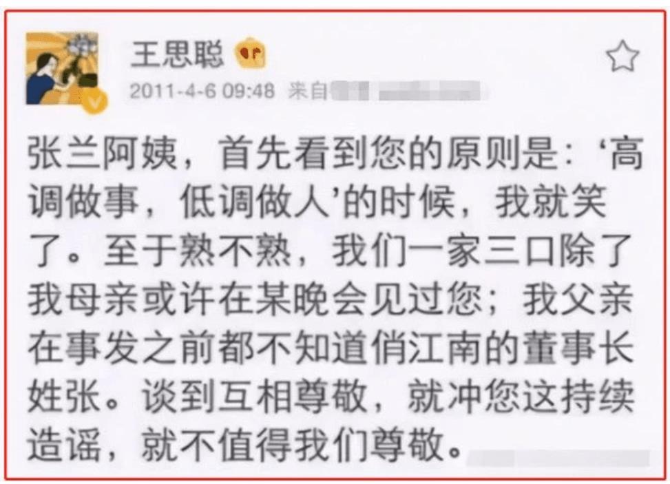 汪小菲亲妈张兰对外称婚礼得到了好朋友王健林的赞助,结果被王思聪发文揭穿,怒怼:“我爸不认识你们母子”。