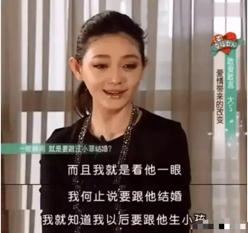 大S和汪小菲在宴会上一见钟情,她看到他第一眼,就觉得自己一定要跟他结婚生小孩。