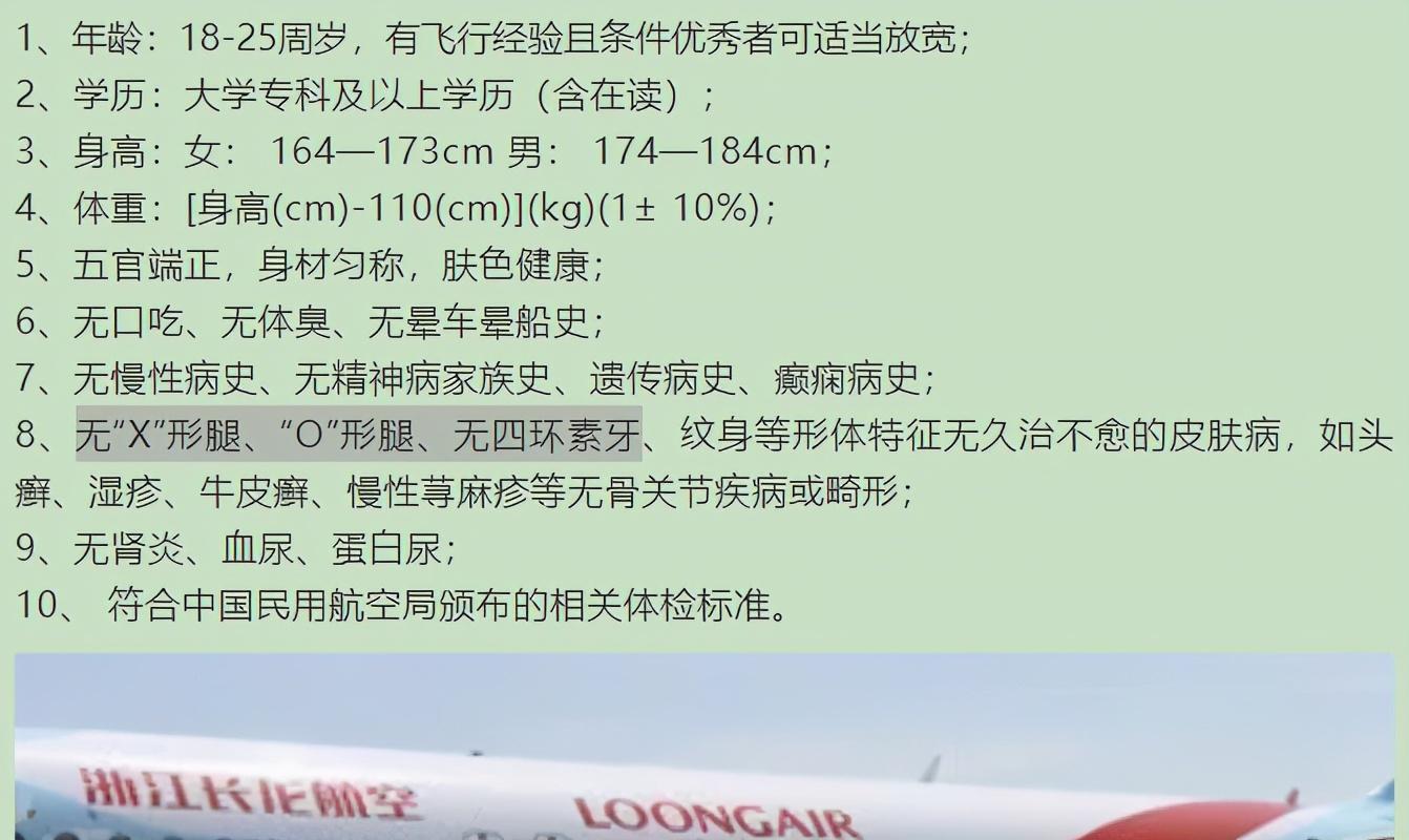 空少的招聘条件,年龄18至25周岁,身高174公分至185公分。面部颈部手部等日常裸露部位无明显疤痕,全身无纹身。无色盲色弱视力障碍,大专及以上学历,英语4级以上。五官端正,身材匀称,口齿清晰,形体匀称步态自如,满足中国民用航空局颁布的,民用航空人员体检合格证管理规则中规定的体检标准,且符合空勤人员背景调查相关要求。