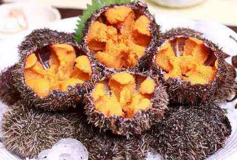 海胆黄,不但味道鲜美,营养价值也很高,每100克鲜海胆黄中含蛋白质41克、旨肪32.7克,还含有维生素A、D各种氨基酸及磷、铁、钙等营养成分。海胆还可以生产加工成为盐渍海胆、酒精海胆、冰鲜海胆、海胆酱和清蒸海胆罐头等多种海胆食品。