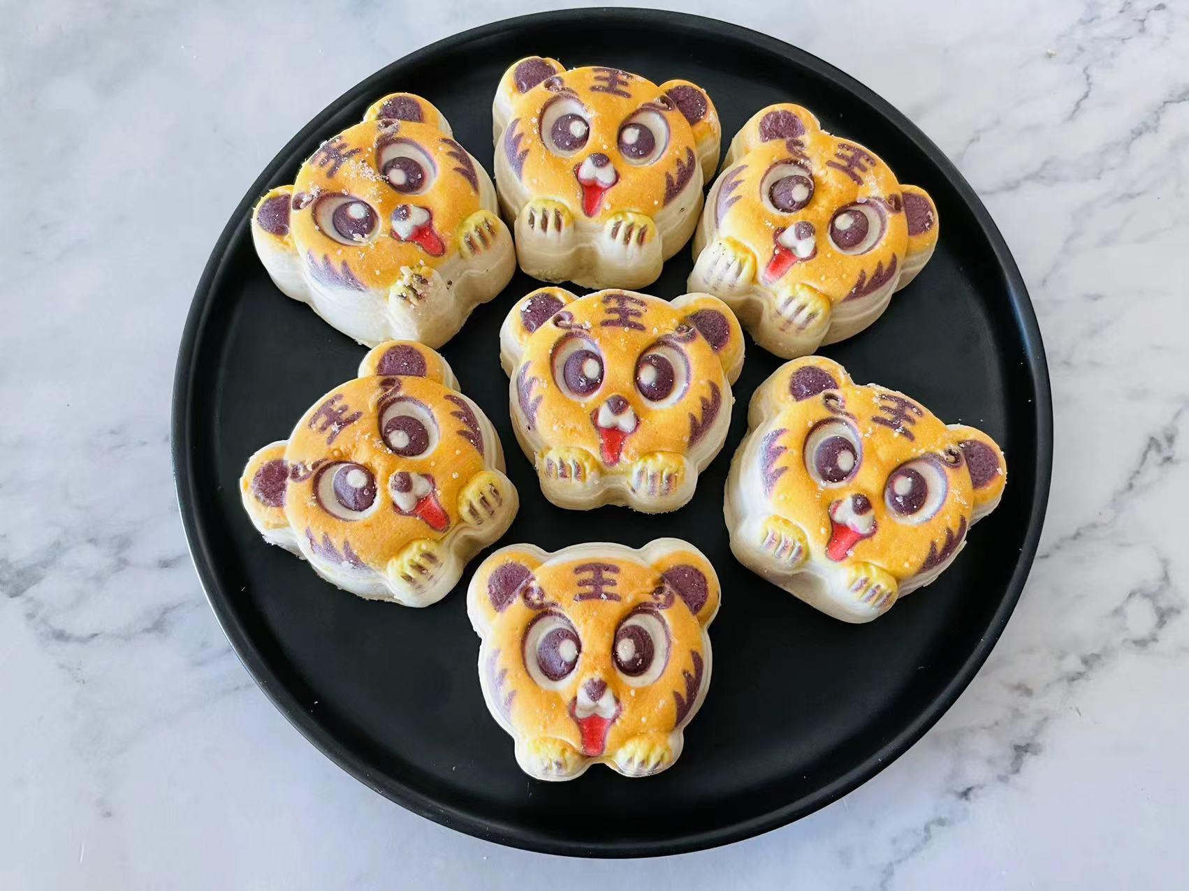 小老虎外面是酥皮的,里面是满满的馅料,而且是鸡肉松馅儿的,对于无肉不欢又喜欢咸口点心的我来说实在太友好了,相比于其他点心没有那么甜腻,味道很不错呢。买了8块,