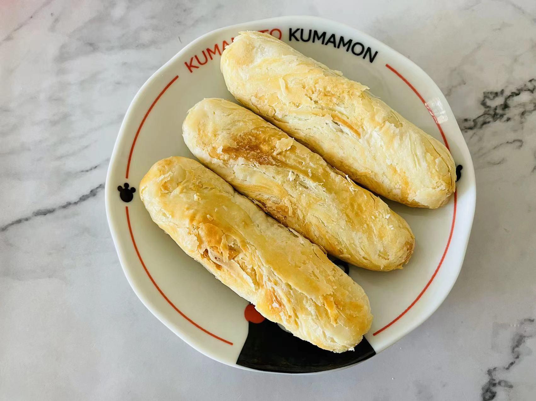 这种糕点长圆的形状像牛舌一样,所以才由此得名吧。对于喜欢咸味糕点的人来说,肯定会首选牛舌饼了,酥皮搭配椒盐的馅料越吃越香不腻口。