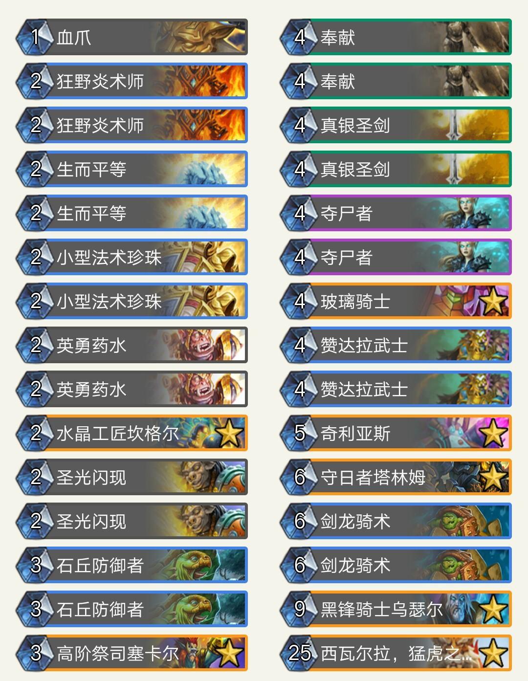 今天给大家推荐一下骑士的卡组,这版本骑士可玩的形态很多,奶骑加入了许多组件,使得骑士不再只有奇数骑这一种形态。
