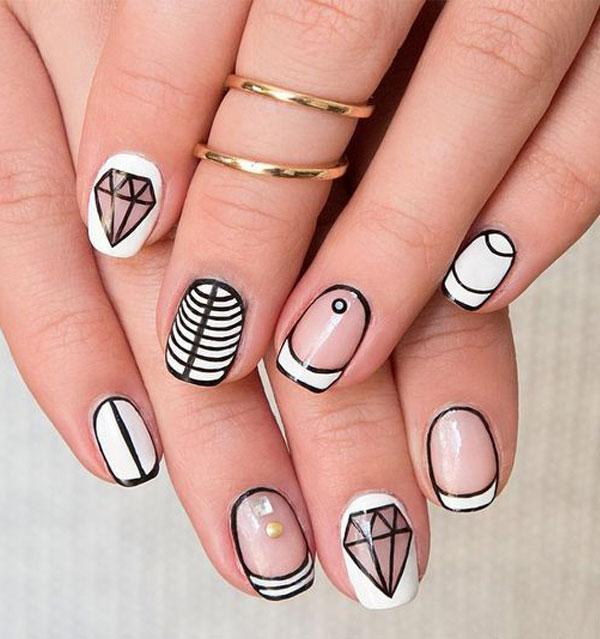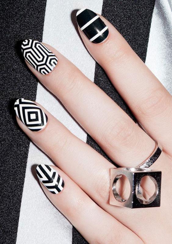 黑白作为最经典的配色,不只是在服饰搭配上备受追崇,在美甲中也深受欢迎。简单的两色通过不同的图形及线条的变化而形成更为繁复的演绎,让你的指尖也变得so fashion!