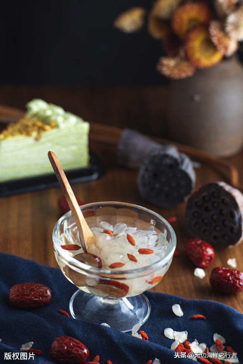 3、皂角米银耳莲子羹,准备适量莲子,百合,枸杞,一些银耳,皂角米,皂角米,需要提前浸泡2到3个小时,银耳莲子也需要浸泡一下,锅里面加入适量的水,把皂角米莲子放下去泡一下,然后再开火煮开,煮开以后把火调小,再煮两个小时左右加入百合,等到所有的材料全部煮烂以后就加入枸杞,继续煮二十分钟左右,再加一些冰糖调味就可以吃了。