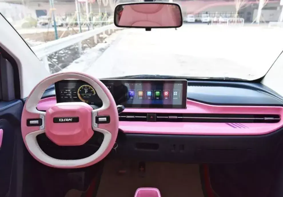 外观方面,整车方正时尚的造型就像一个小盒子,配置大尺寸的前灯组,看起来十分可爱,中间为北汽制造的“BAW”英文车标,一下子提升了气质。