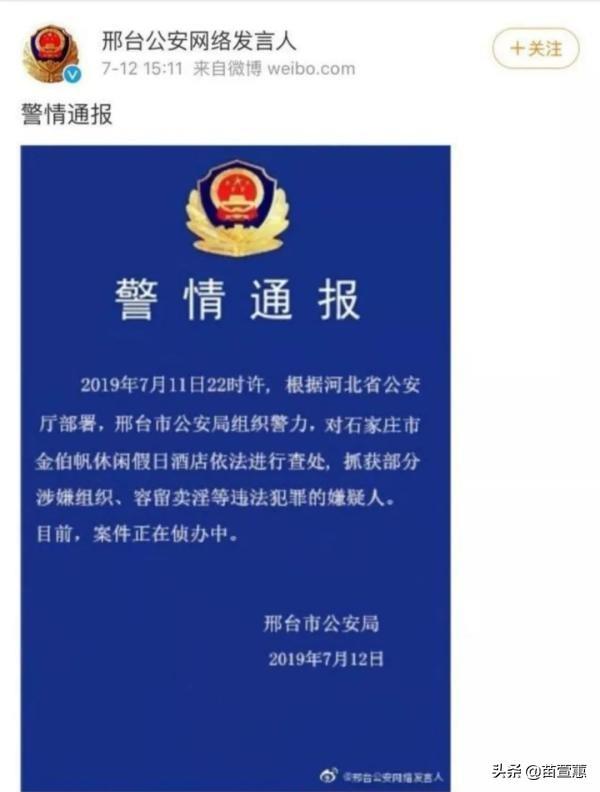 查阅资料可以发现,那是在2019年7月11日晚上10点钟,警方对石家庄市金伯帆休闲假日酒店依法进行查处,抓获部分涉嫌组织、容留卖淫等违法犯罪的嫌疑人。而这一次抓捕也是根据河北省公安厅部署由邢台市公安局组织实施的。最终,吴迪案仅警察系统就查处了8人。