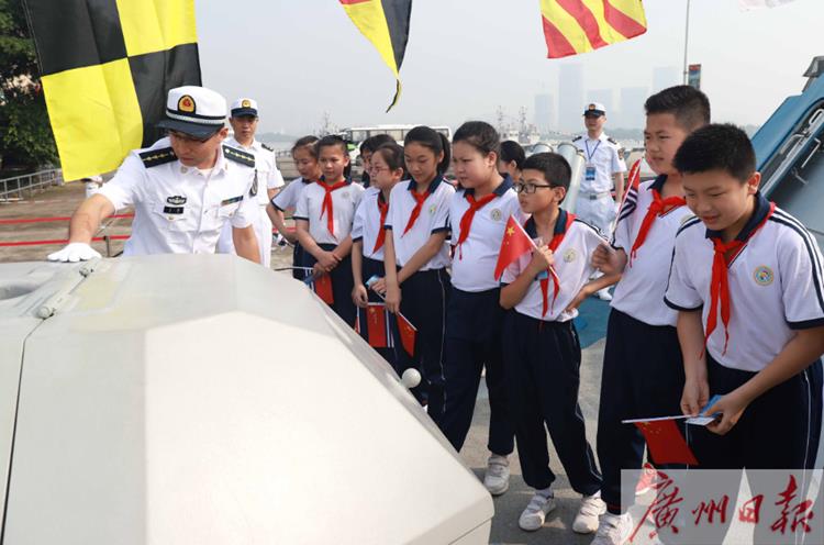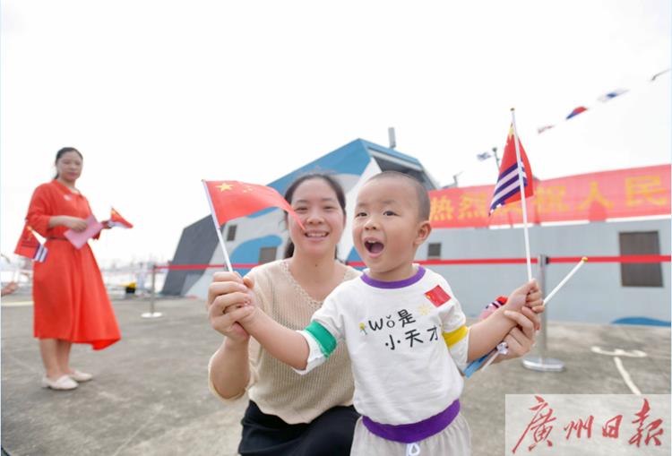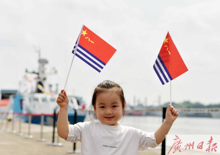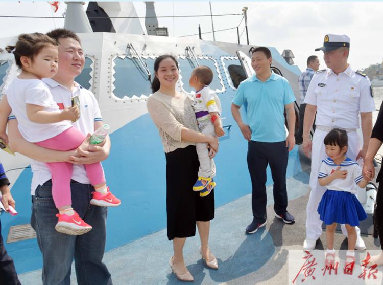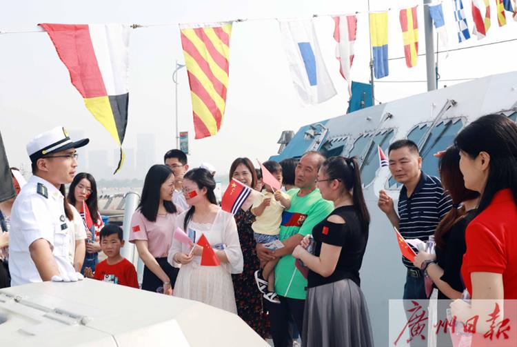 今天一早,广州某军港码头,军旗猎猎,悬挂满旗的开放舰艇格外引人瞩目。上午9时,参观等待区的观众早已人头攒动。“第一次‘零距离’触摸战舰,感受水兵温暖,真让人兴奋不已!”首次参观海军新型护卫舰的女生小海是一名军迷。小海说,从亚丁湾“护航”、航母“辽宁号”入列,到首艘国产航母下水,再到南海海上阅兵,让她真切感受到人民海军不断发展壮大,“此生不悔入华夏”。