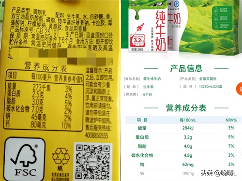 学生饮用奶每100毫升的钙含量是80毫克,蛋白质含量是2.5克,而配料表只有生牛乳的普通无菌枕牛奶,每100毫升的钙含量是100毫克,蛋白质含量是3.2克。提醒大家以后买牛奶一定要看配料表,配料表只有生牛乳的牛奶才是好牛奶。