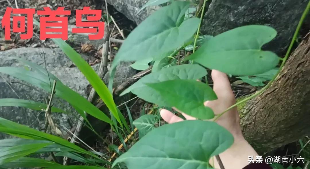 大家好,我是湖南徐小六。现在农村里有很多植物长得很像何首乌,比如黄独和野党生的叶子就像是何首乌,但是他们的药用都不相同。真正的何首乌是长在大石头山里,它的叶子是心形,叶片有一部分花纹,没有花纹的是黄独和野当生。