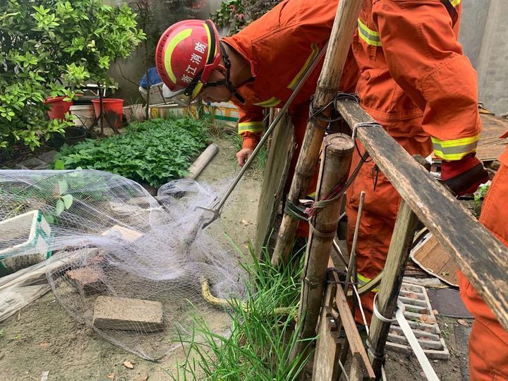 “我不敢处理,怕被蛇咬。”村民拨打了“119”求助。很快,市北消防救援站的7名消防员赶往现场处置。